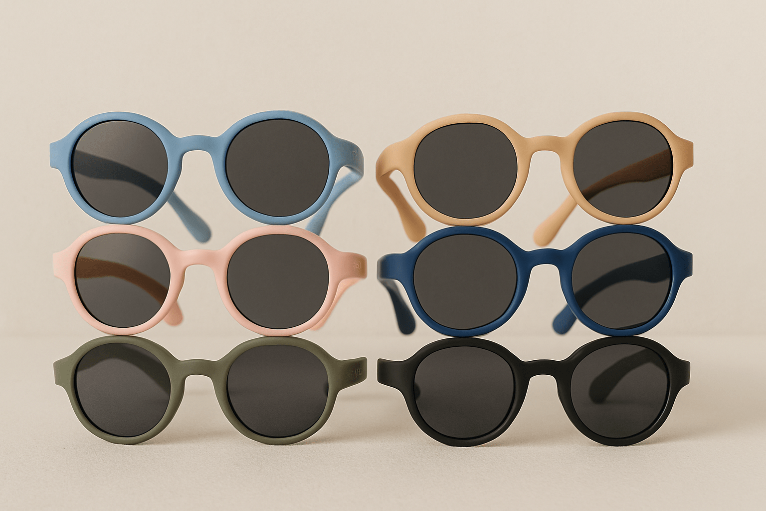 Solbriller spesielt laget for 0–9 måneder, med myke, fleksible rammer.