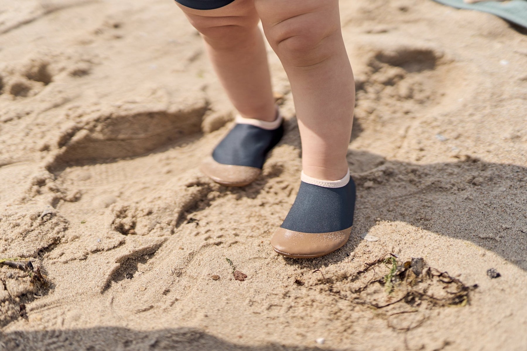 Mikk-Line Swimshoe Solid i Blue Nights er perfekte for strand, basseng og ferie. De beskytter små føtter mot varm sand, skarpe steiner og glatte underlag, samtidig som de sitter behagelig og lett på foten.