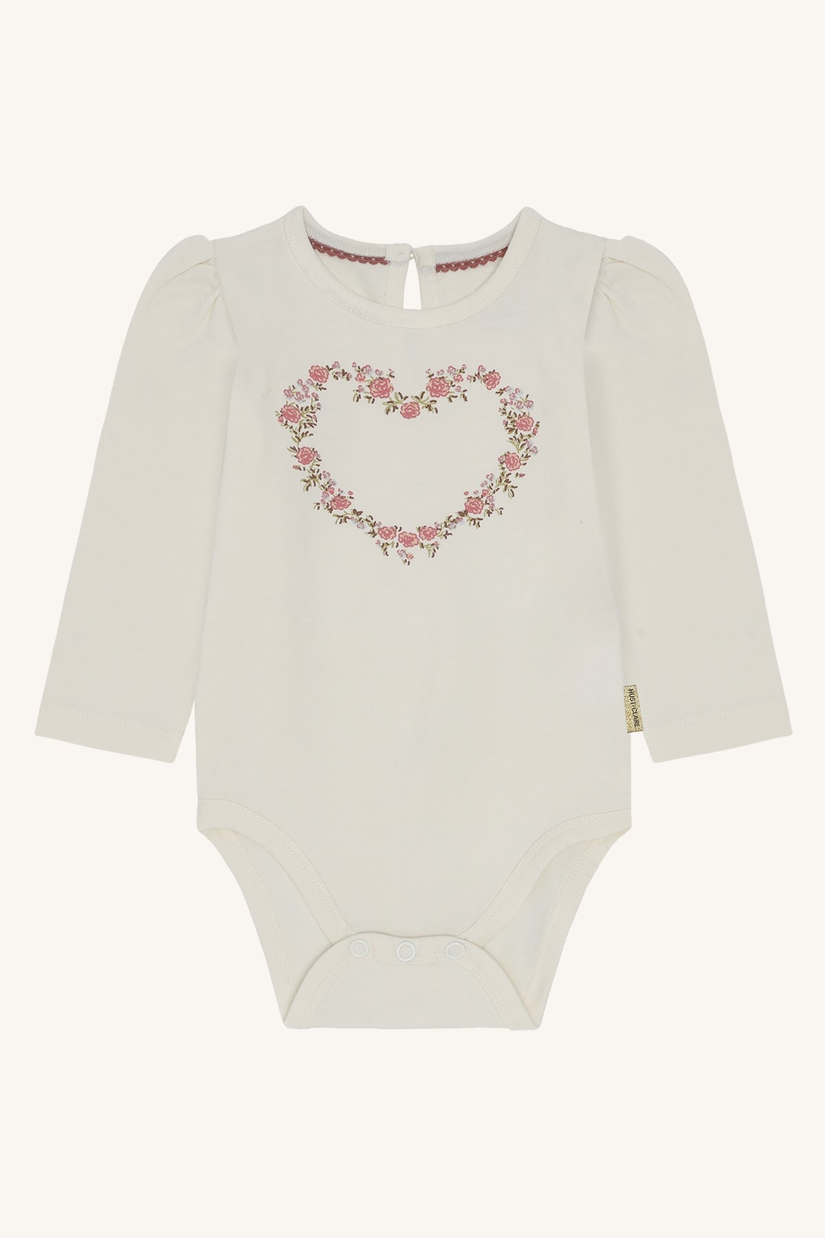 En nydelig body fra Hust and Claire med søtt hjerteprint laget av små blomster. Britt Lovely Heart i fargen Sugar er laget i myk økologisk bomull med litt stretch, som gir både komfort og bevegelsesfrihet. Perfekt både til hverdagsbruk og koselige anledninger.