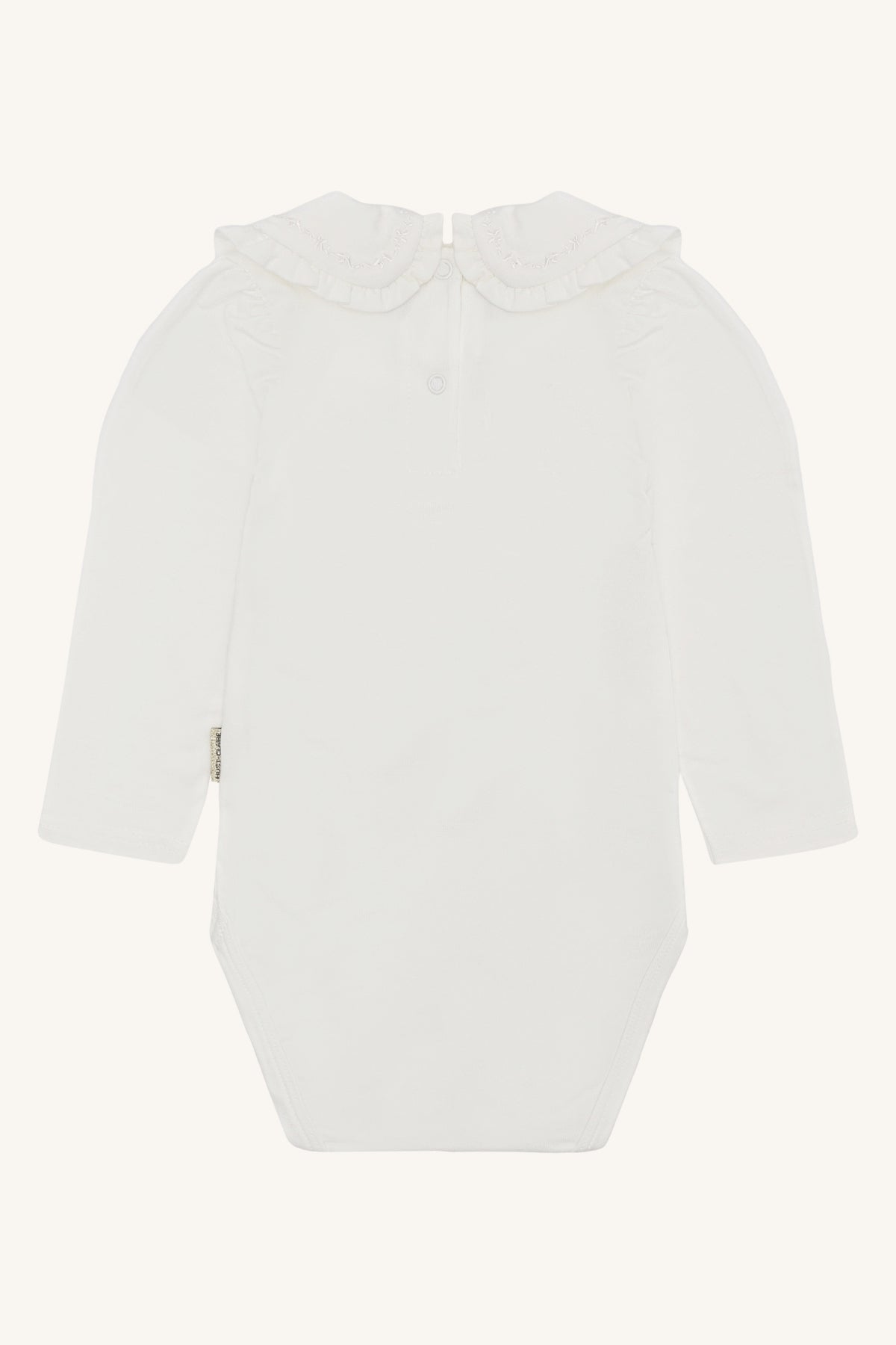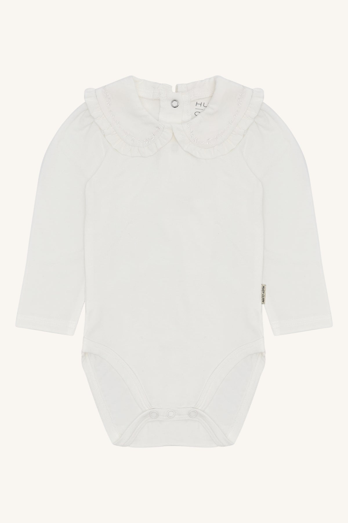 Elegant og myk body fra Hust & Claire med vakker krage i brodert blondekant.