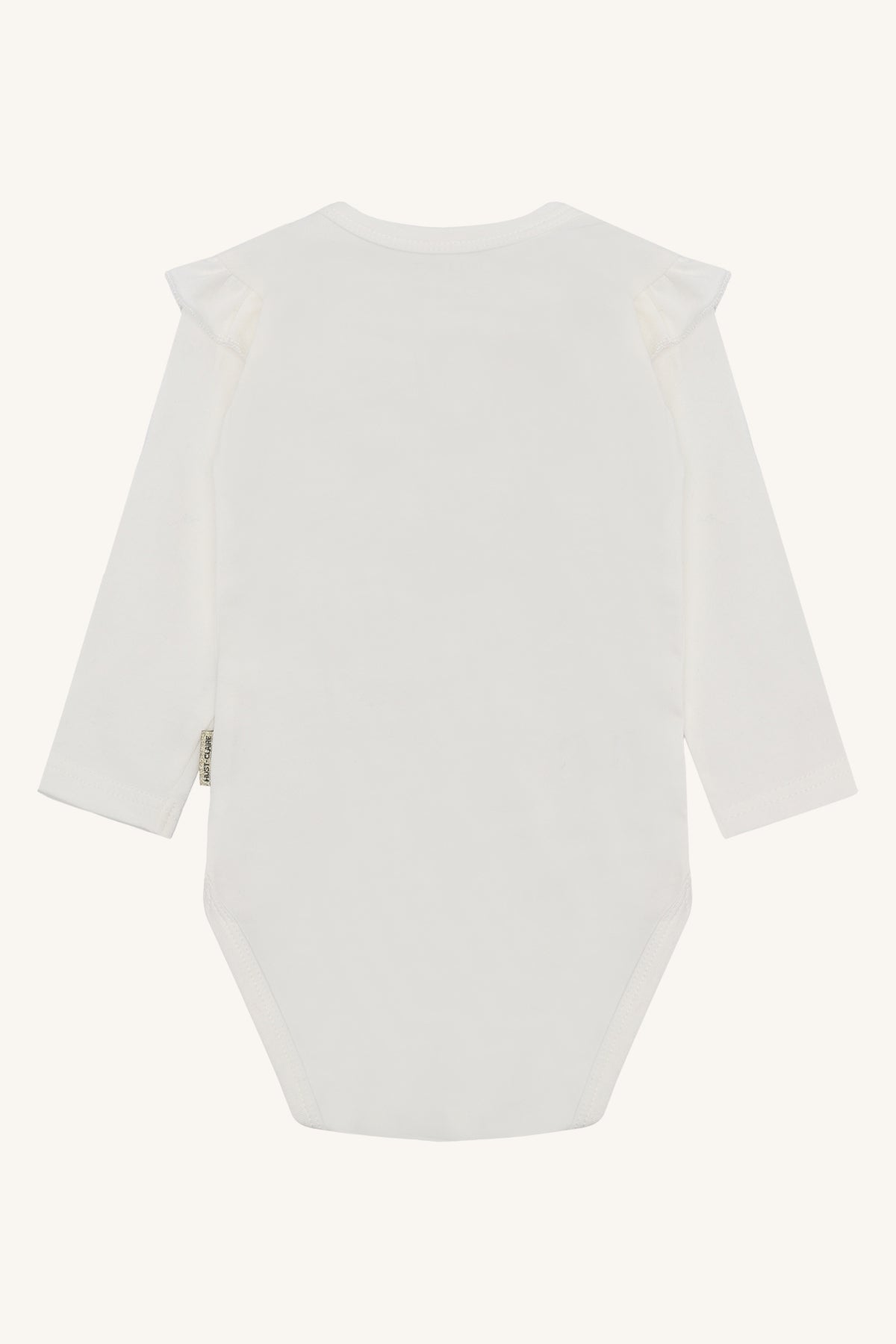 Bodyen har lange ermer, myk stretch for god bevegelse og trykknapper på skulderen og i skrittet for enkel påkledning. Et komfortabelt og sjarmerende plagg for de minste i høytiden. 🎀