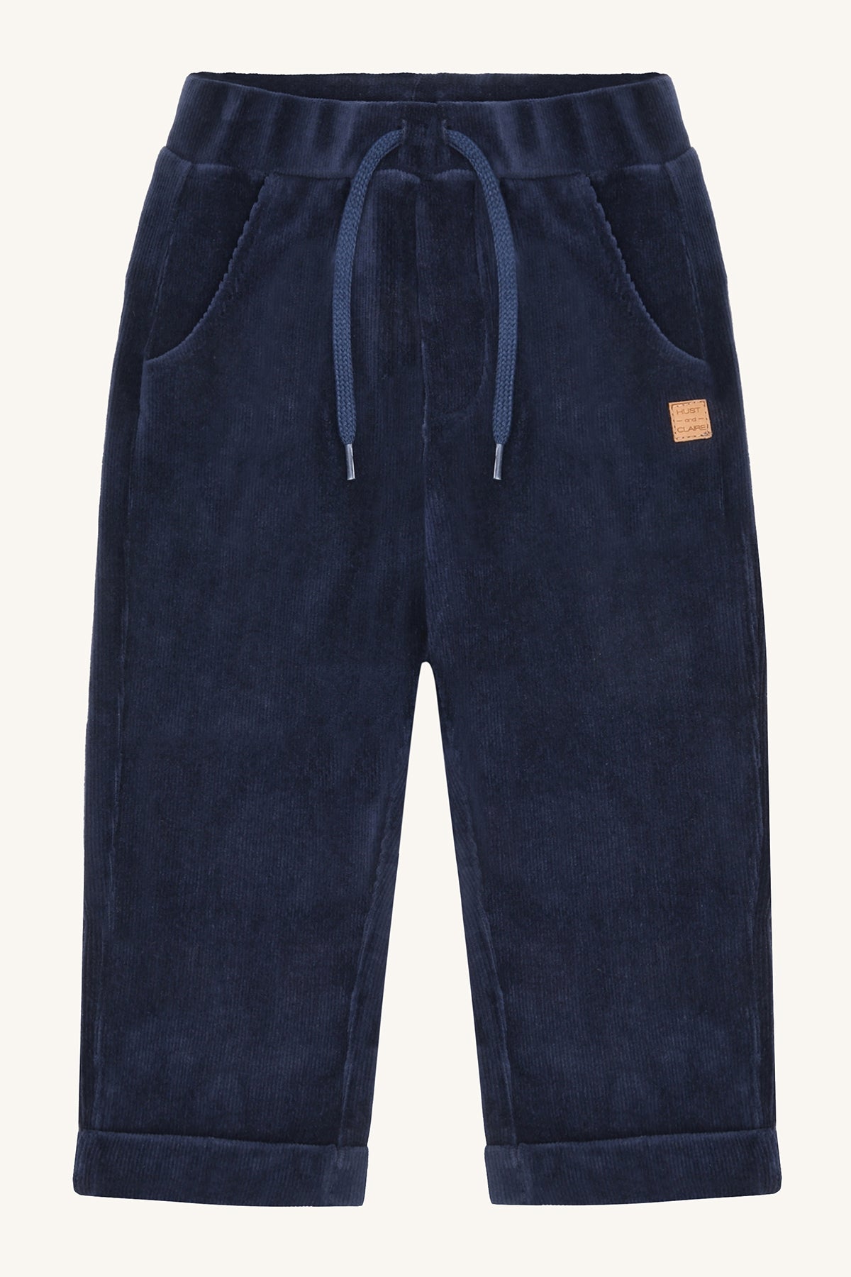 Myke og komfortable bukser i vakker marineblå velur fra Hust & Claire. Perfekte for jule- og vintermånedene, med en klassisk og stilren look som passer både til fest og hverdagsbruk. Stoffet har en lett glans og føles behagelig mot huden – et ideelt valg for barn som liker å kle seg pent, men komfortabelt.
