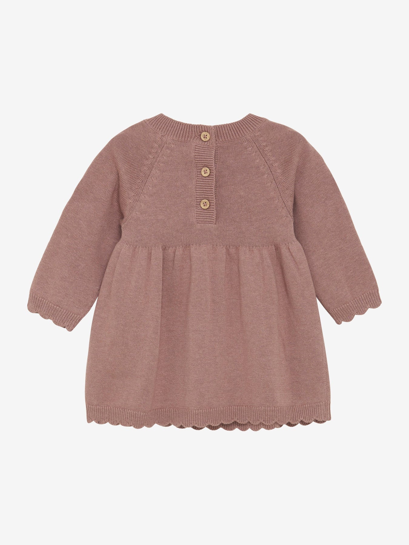 HUTTEliHUT Strikkekjole med lange ermer i fargen Burlwood er en tidløs og sjarmerende kjole for små jenter. Den er laget i en myk og behagelig blanding av merinoull og bomull, som gir både varme og pusteevne. Overdelen har vakre strikkedetaljer, mens skjørtet har god vidde som gir kjolen et feminint og elegant uttrykk. Passer like godt til hverdagsbruk som til spesielle anledninger.