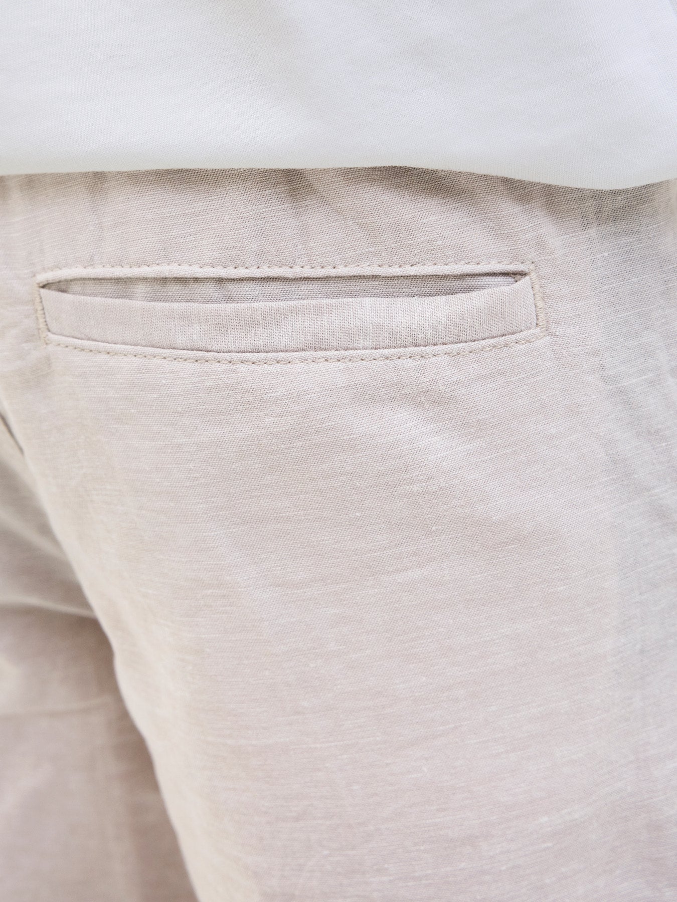 Superkomfortable joggeshorts for varme dager! Disse shortsene har en avslappet passform og er laget av en lett og luftig blanding av bomull og lin, noe som gjør dem perfekte for sommeren. Den slitesterke twillvevingen gir et klassisk utseende, samtidig som den elastiske linningen og snøringen i livet sikrer optimal komfort.
