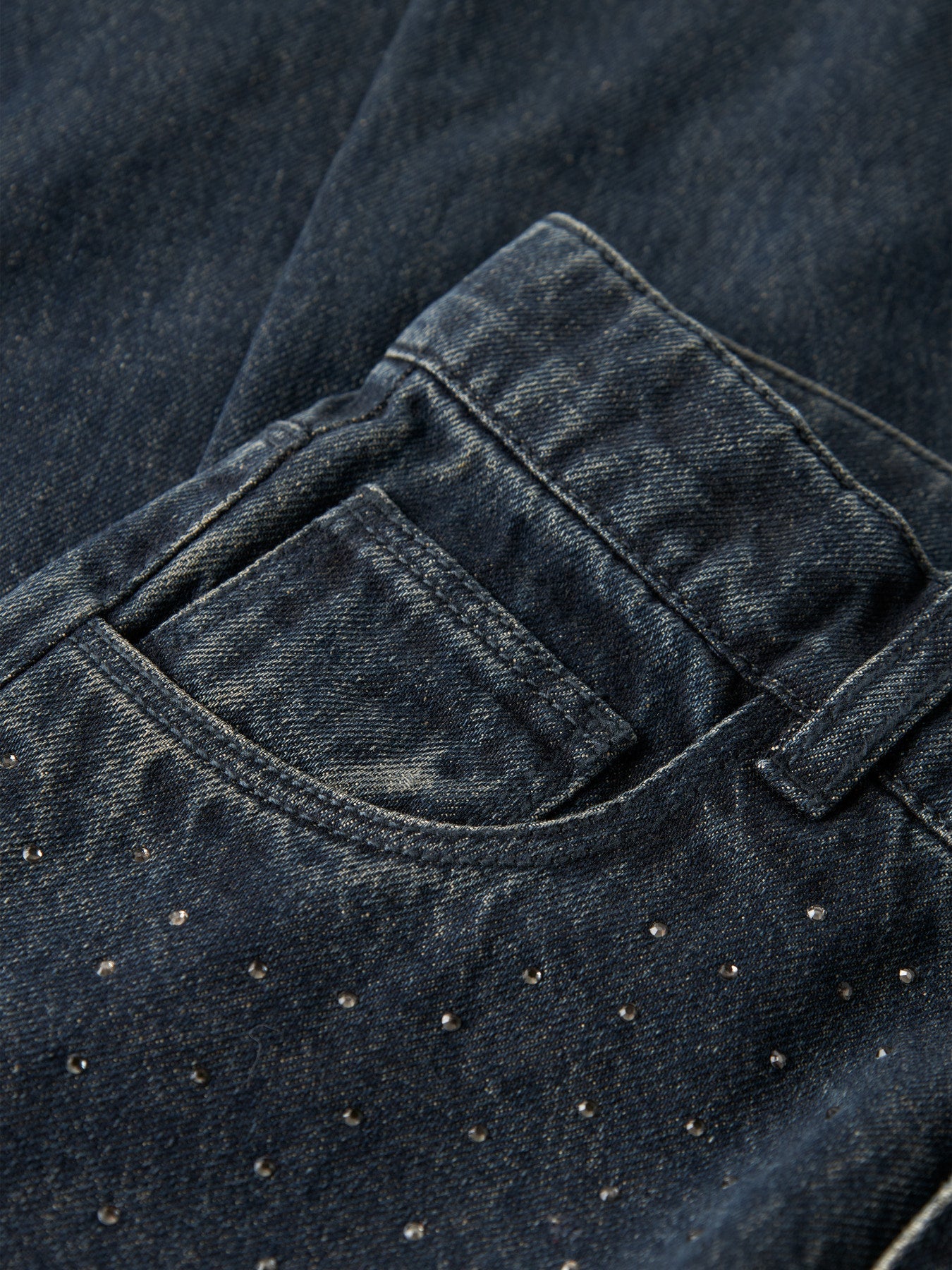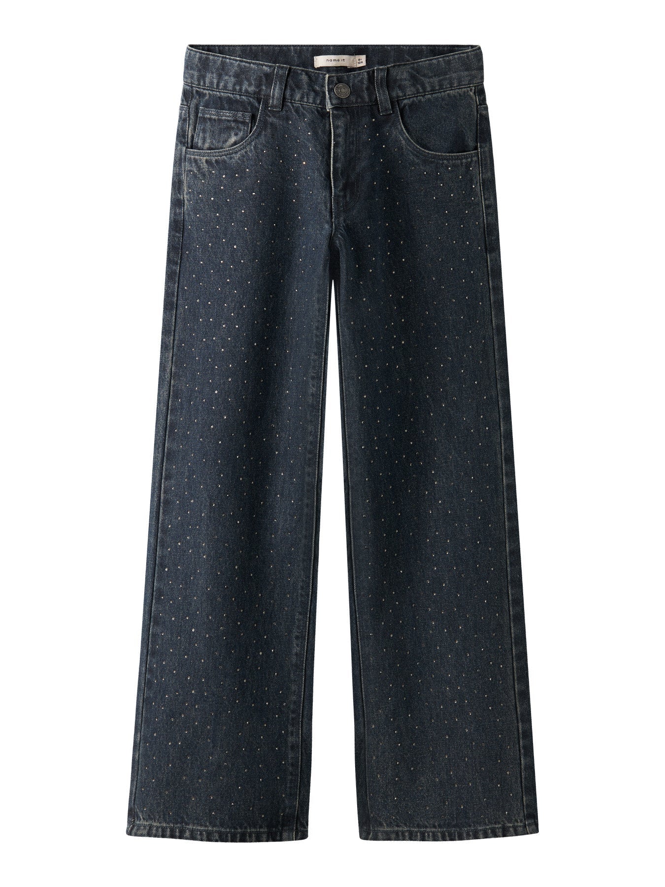 Rose Wide Rhine Jeans fra Name It kombinerer klassisk denim med en moderne vri. Den mørkeblå vasken gir et tidløst uttrykk, mens små rhinestones tilfører et hint av glamour. Perfekt til både hverdagsbruk og festlige anledninger!