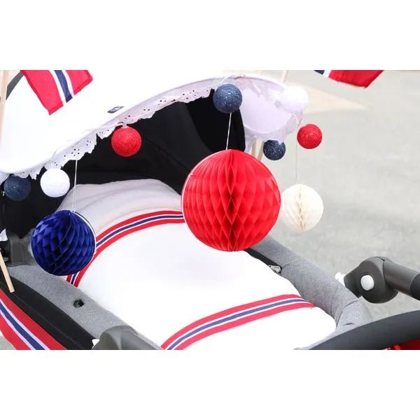Gi barnevognen eller festbordet et ekte 17. mai-preg med dette dekorative båndet fra Tinkafu®. Med de klassiske røde, hvite og blå stripene fra det norske flagget, er båndet en enkel måte å skape feststemning på – enten rundt vognen, blomsteroppsatser eller som bordpynt.