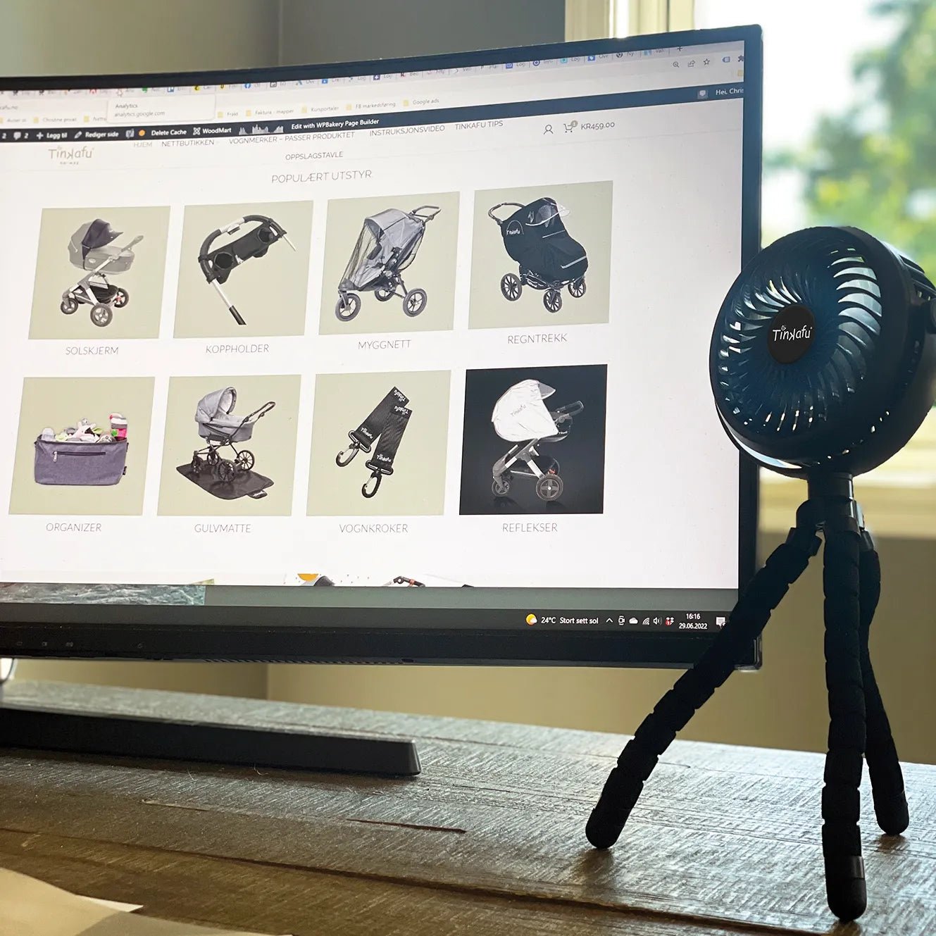 Hold deg og din baby kjølig i sommervarmen med Tinkafu® Barnevognvifte! Denne kraftige og stillegående viften er perfekt for barnevogner, sprinkelsenger, nattbord, kontorpulter og mye mer. Med et integrert LED-lys og fleksible festeben kan den brukes overalt – både hjemme og på farten.