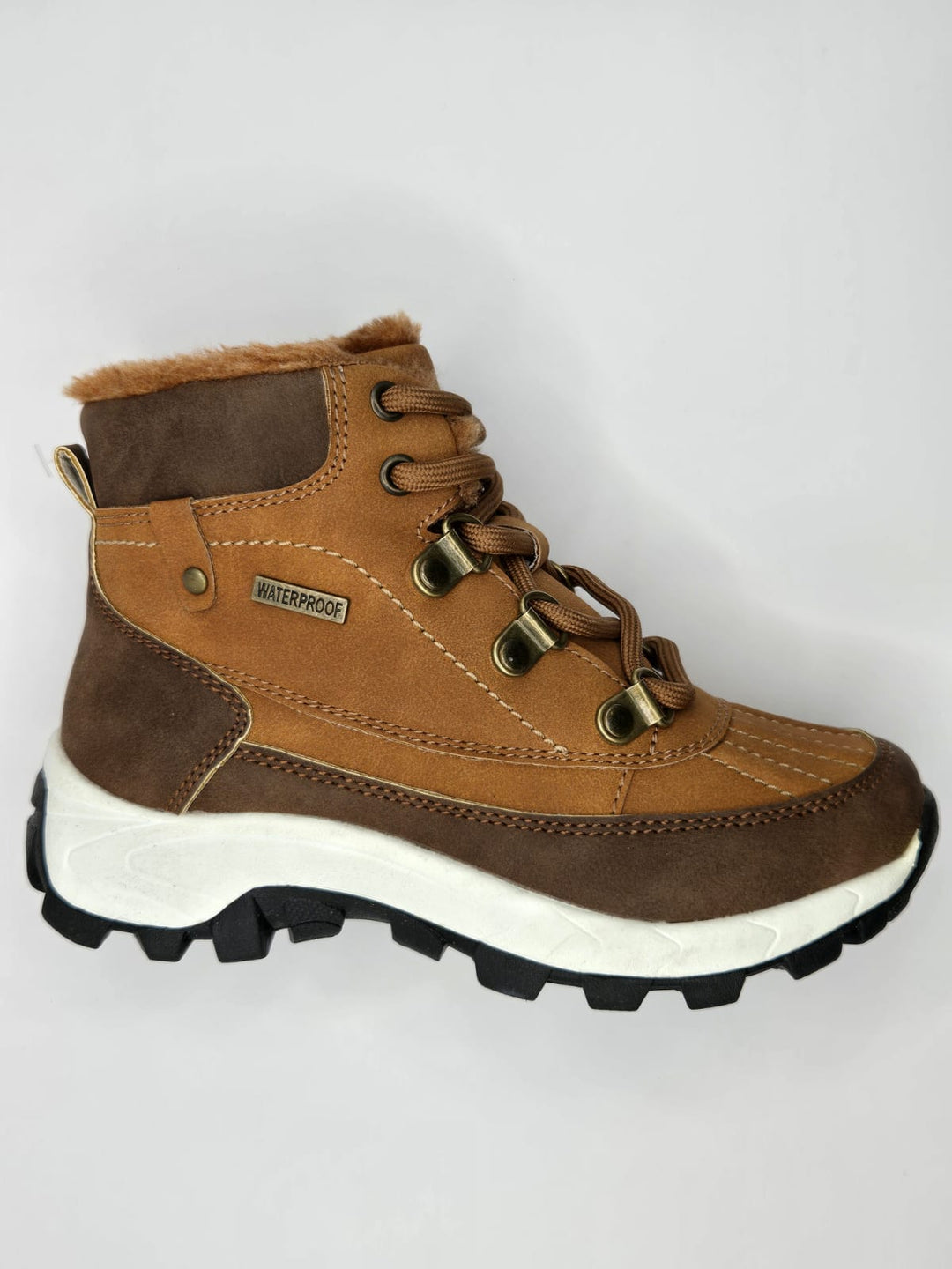 Allværskoene er perfekte for aktive barn som trenger pålitelige sko for både regn og sol. Med et vanntett ytre og et varmt fôr er disse skoene ideelle for utendørs eventyr, uansett værforhold. Skoene er laget med en robust såle som gir godt grep på både våte og tørre underlag, og den pustende designen sørger for at føttene holder seg komfortable hele dagen. Den moderne, brune fargen og detaljer som gjør skoene stilige for både hverdagsbruk og eventyr.