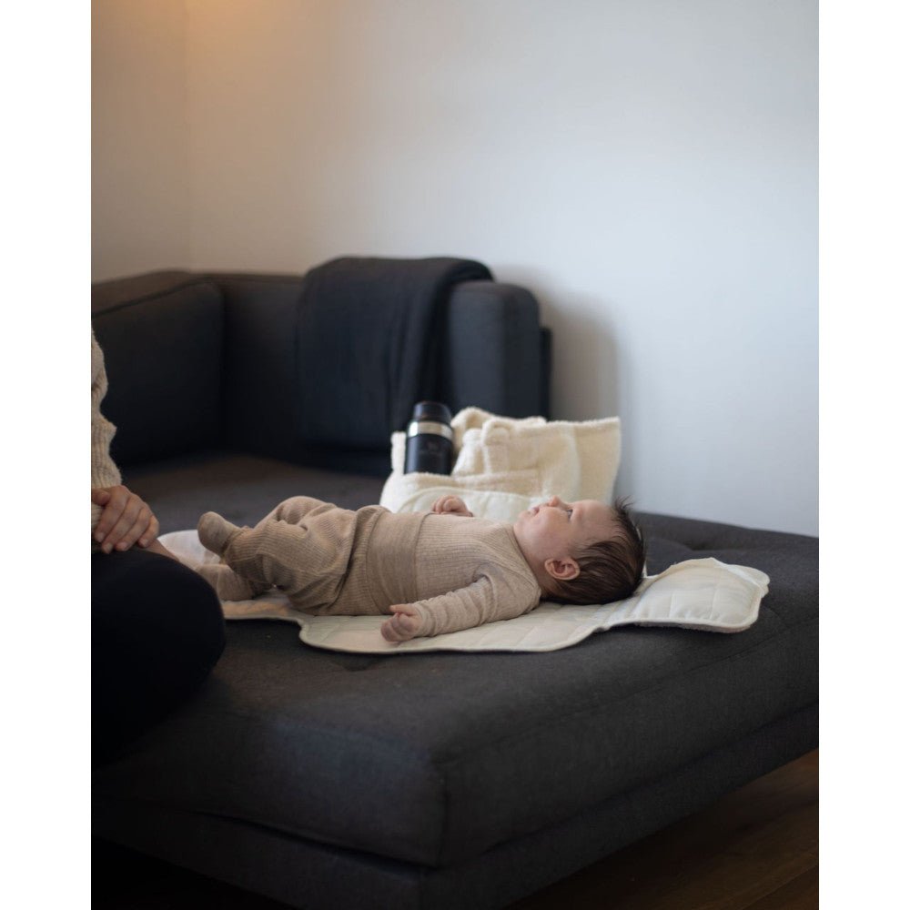 Easygrow Teddy Stellematte i fargen Ivory er en myk og funksjonell stellematte i deilig teddy-stoff, utviklet for å gi babyen en ren og komfortabel stelleplass – uansett hvor du befinner deg.