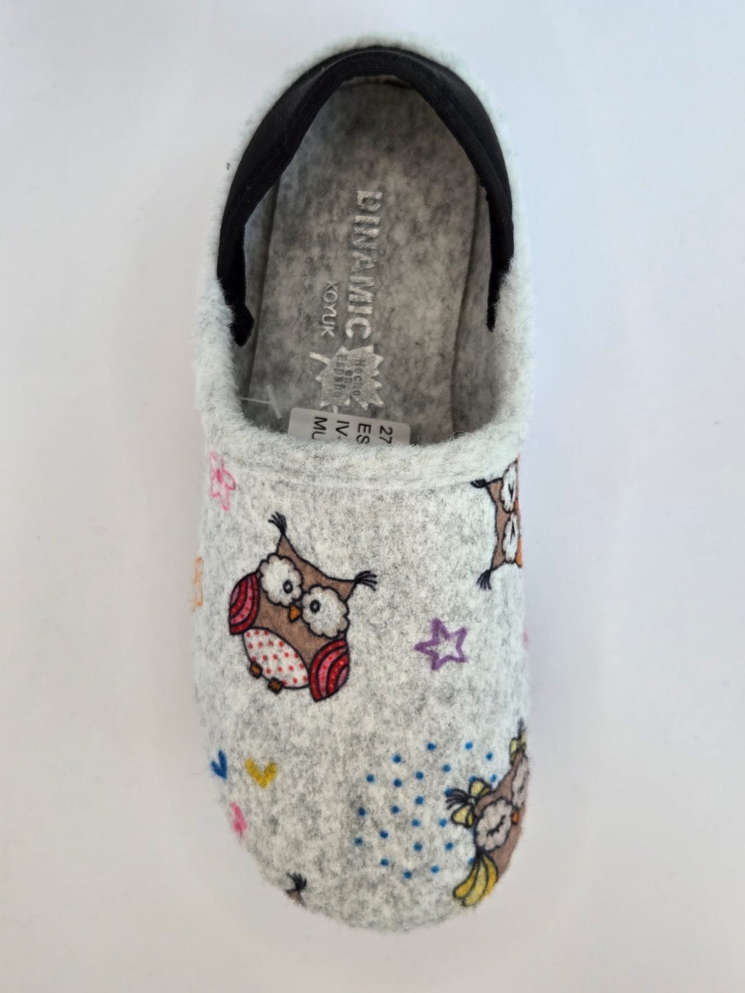 Denne koselige og varme tøffelen er laget av myk og pustende filt, perfekt for avslapning hjemme. Den er utstyrt med et søtt uglemotiv som gir et morsomt og fargerikt preg. Tøffelen har en komfortabel passform og er ideell for både kalde morgener og kvelder. Med et stilig design og myk såle gir den godt grep og langvarig komfort.