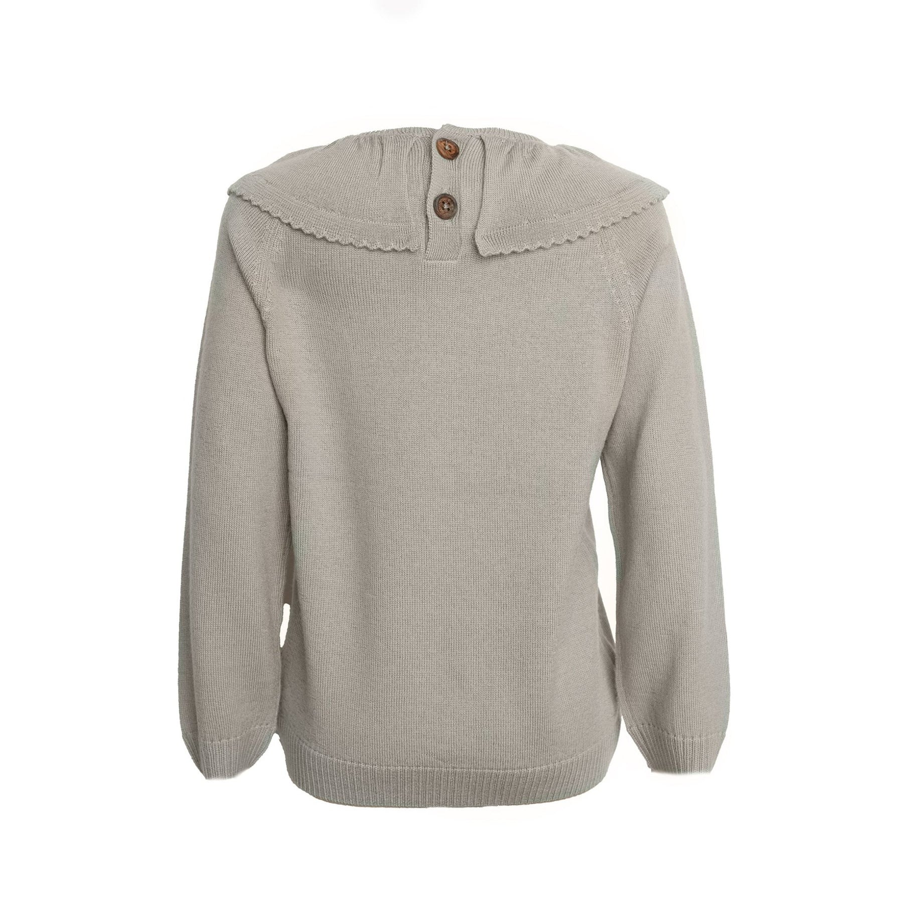 Myk, strikket genser i 100 % merinoull med nydelig krage og treknapper. Ribbekanter i hals og ermeåpninger gir god passform og et tidløst uttrykk. Merinoullen puster og regulerer temperaturen naturlig – perfekt til hverdags hele året.