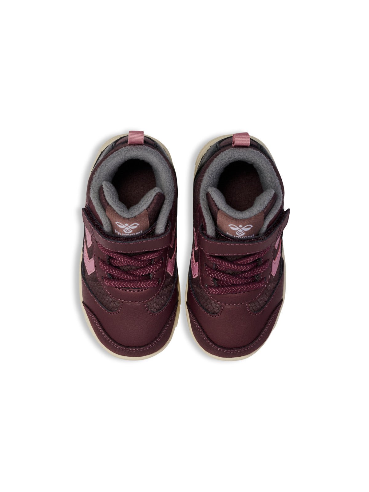 Hummel Crosslite Winter Mid Infant i fargen Peppercorn kombinerer lettvektskonstruksjon med robust PU- og mesh-overdel. Den myke, varme foringen holder føttene tørre og komfortable på kalde vinterdager, mens elastiske lisser og justerbar borrelås gjør støvlene enkle å ta på og tilpasse små føtter. Perfekt for barnehage, vinterlek og turer i kulda.