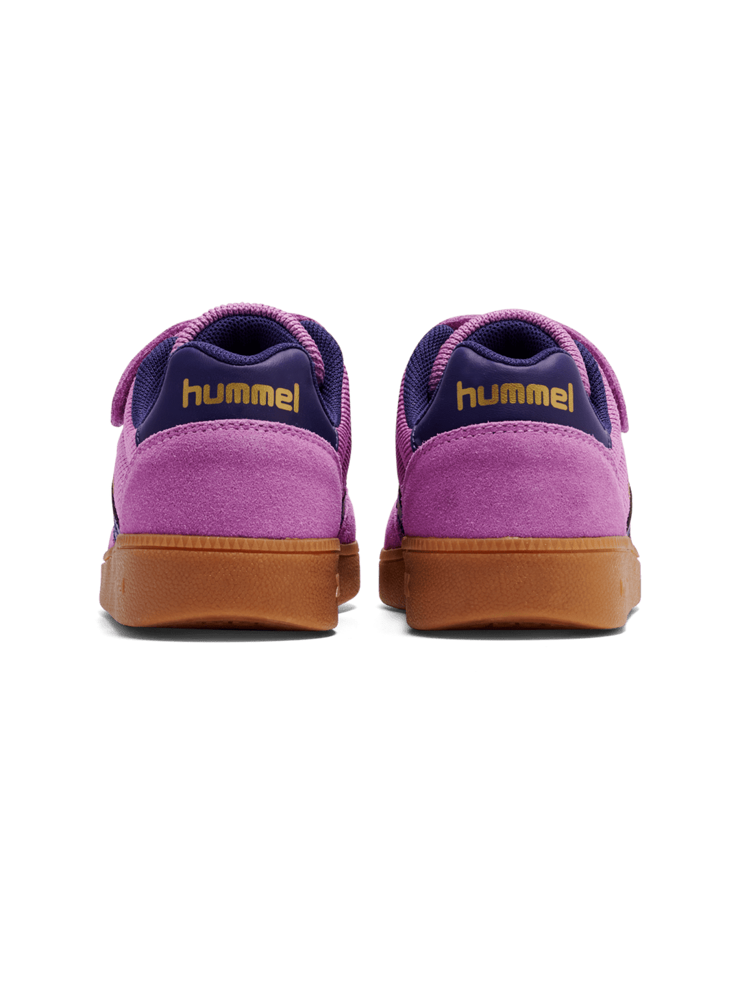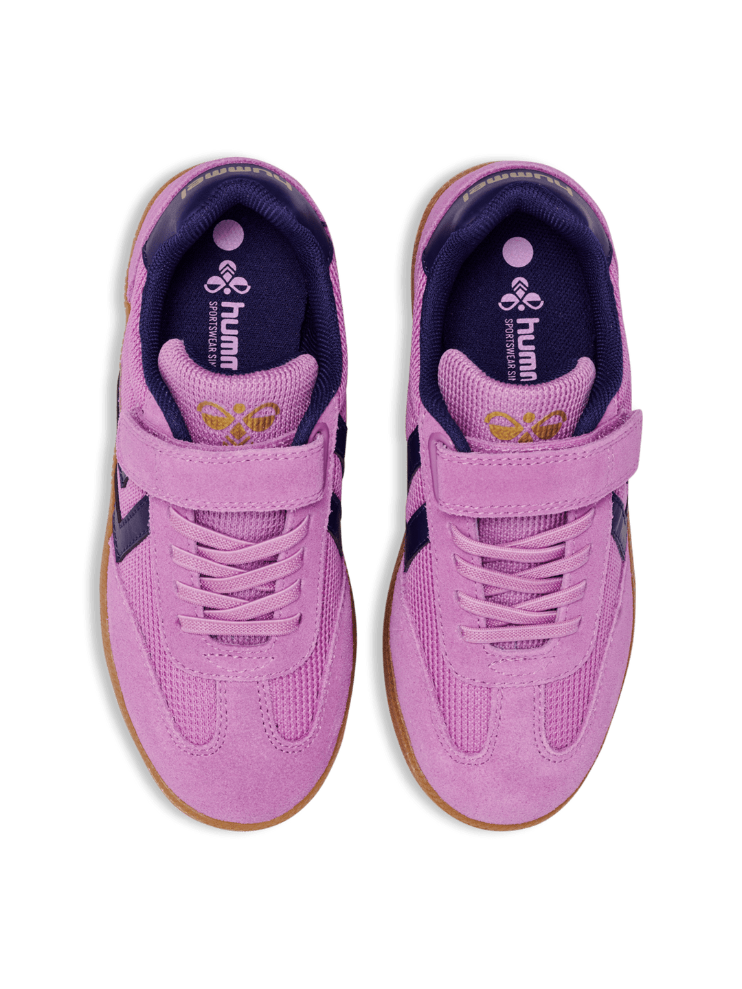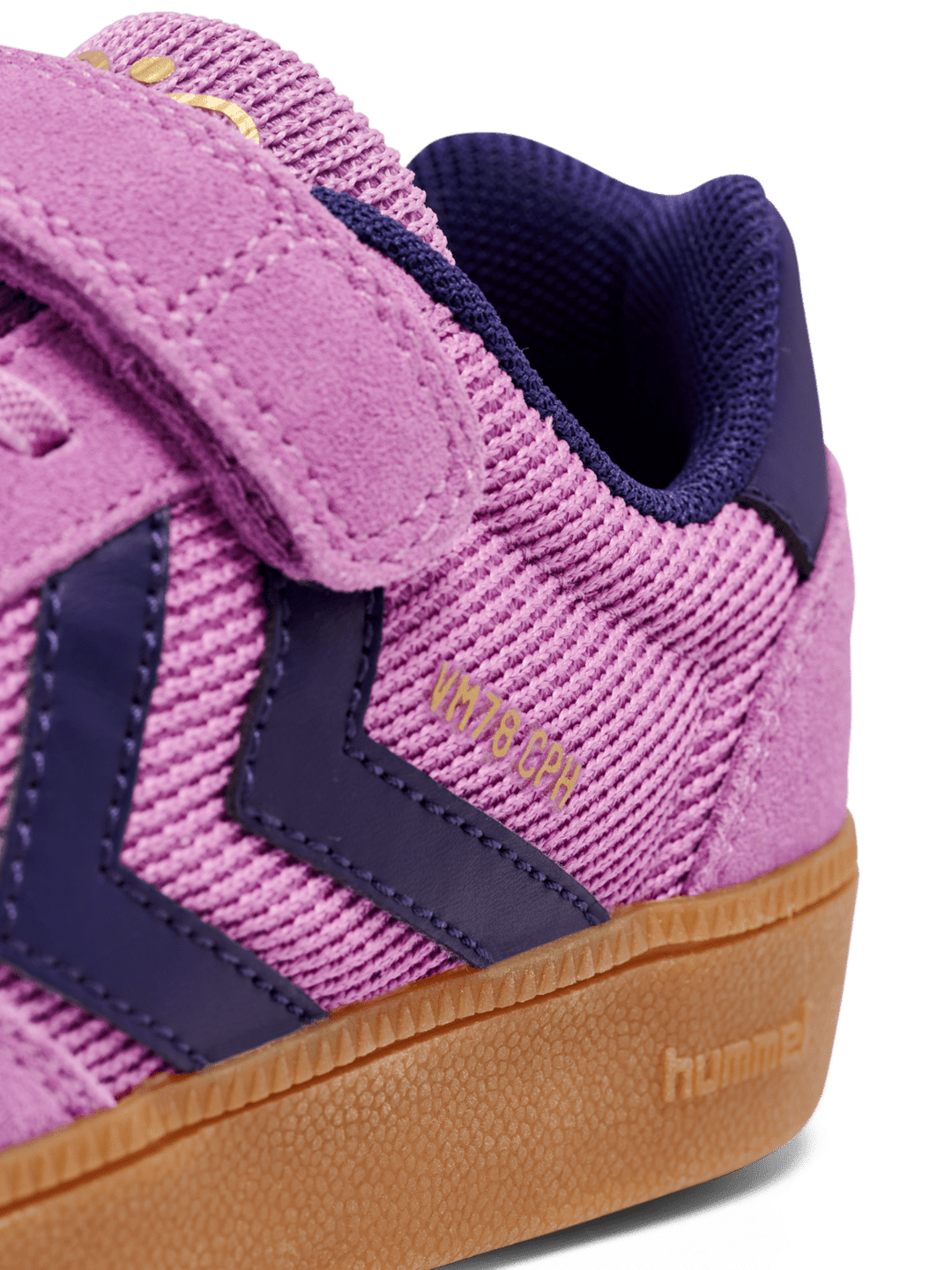 Gi antrekket et friskt preg med Hummel VM78 CPH JR i en herlig fiolett farge! Disse sneakersene kombinerer semsket skinn og pustende mesh for en stilig og komfortabel hverdagssko. Perfekte for både skole og fritid, med lett konstruksjon og slitesterk yttersåle som tåler aktiv bruk.