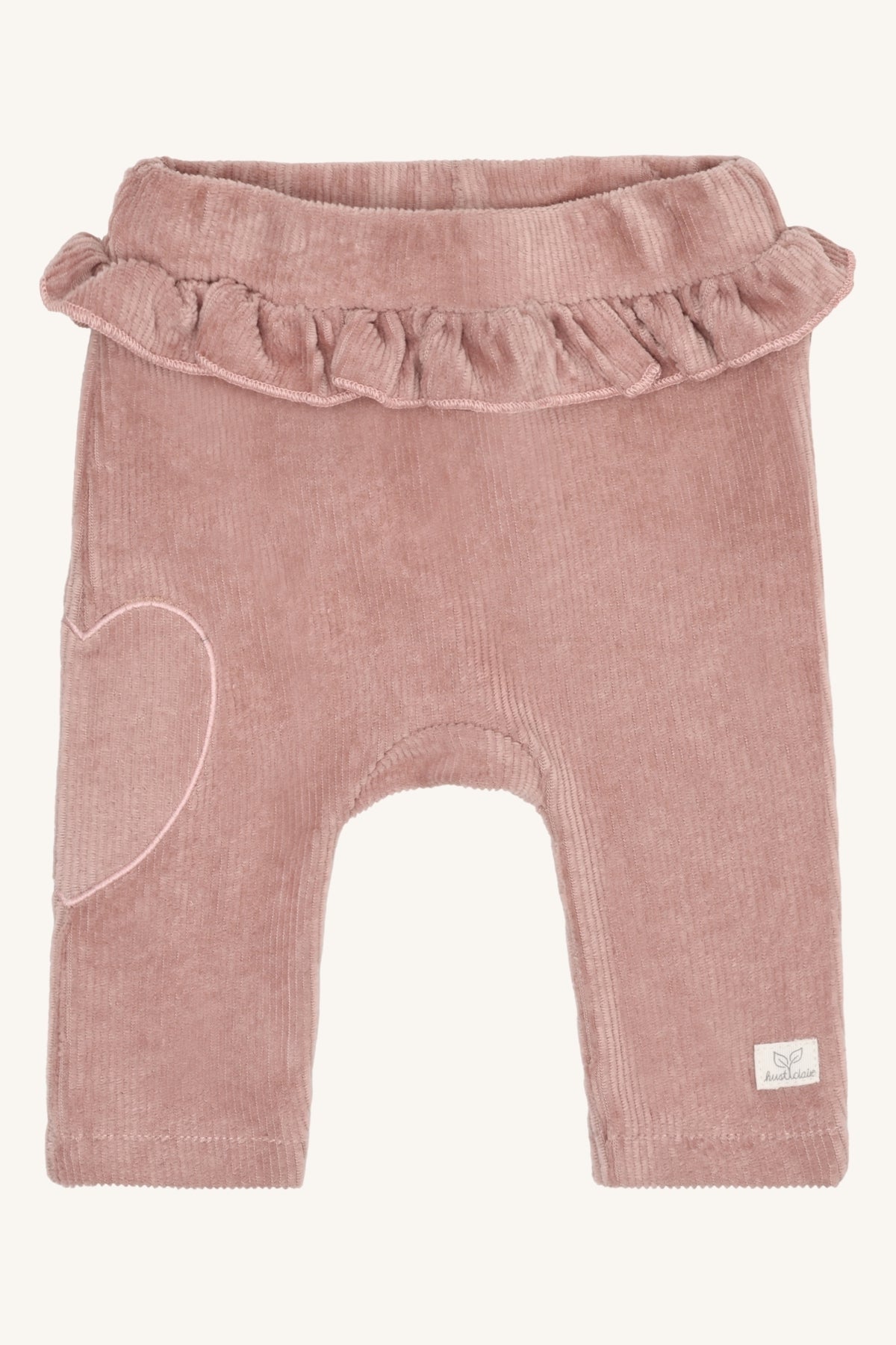 Nydelig bukse i myk kordfløyel fra Hust and Claire. Denne modellen i delikat rosafarge har en søt volang i livet og hjertebroderi på knærne – en herlig kombinasjon av komfort og sjarm. Laget i 100 % bomull med elastisk midje som gir god passform og bevegelsesfrihet. Perfekt til både hverdagsbruk og fine anledninger.