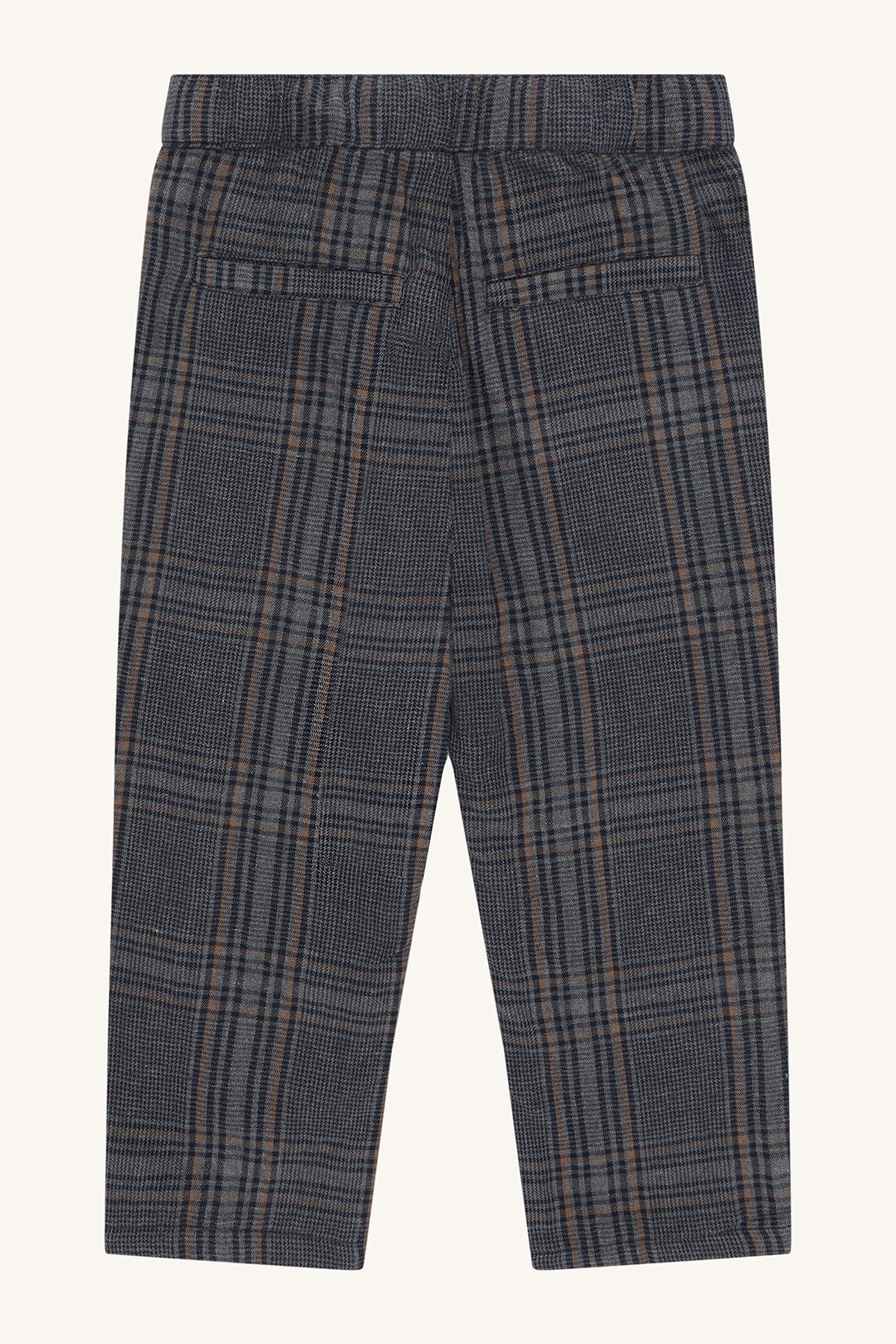 Klassiske bukser i myk bomull fra Hust & Claire – et perfekt valg til julens festlige anledninger! Denne stilrene modellen kombinerer komfort og eleganse, med et tidløst rutemønster i gråtoner som passer perfekt sammen med en skjorte eller vest.