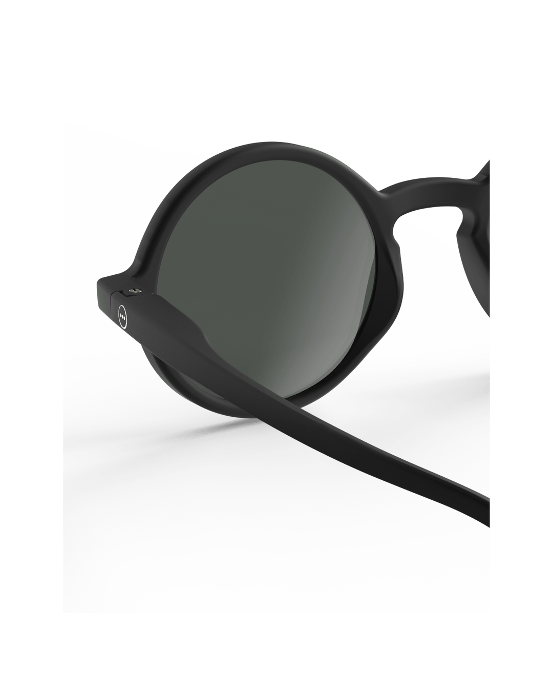 Stilrene, svarte solbriller i IZIPIZIs ikoniske runde #G-design – spesialtilpasset for barn i alderen 5–10 år. Perfekte til skole, fritid og ferie!