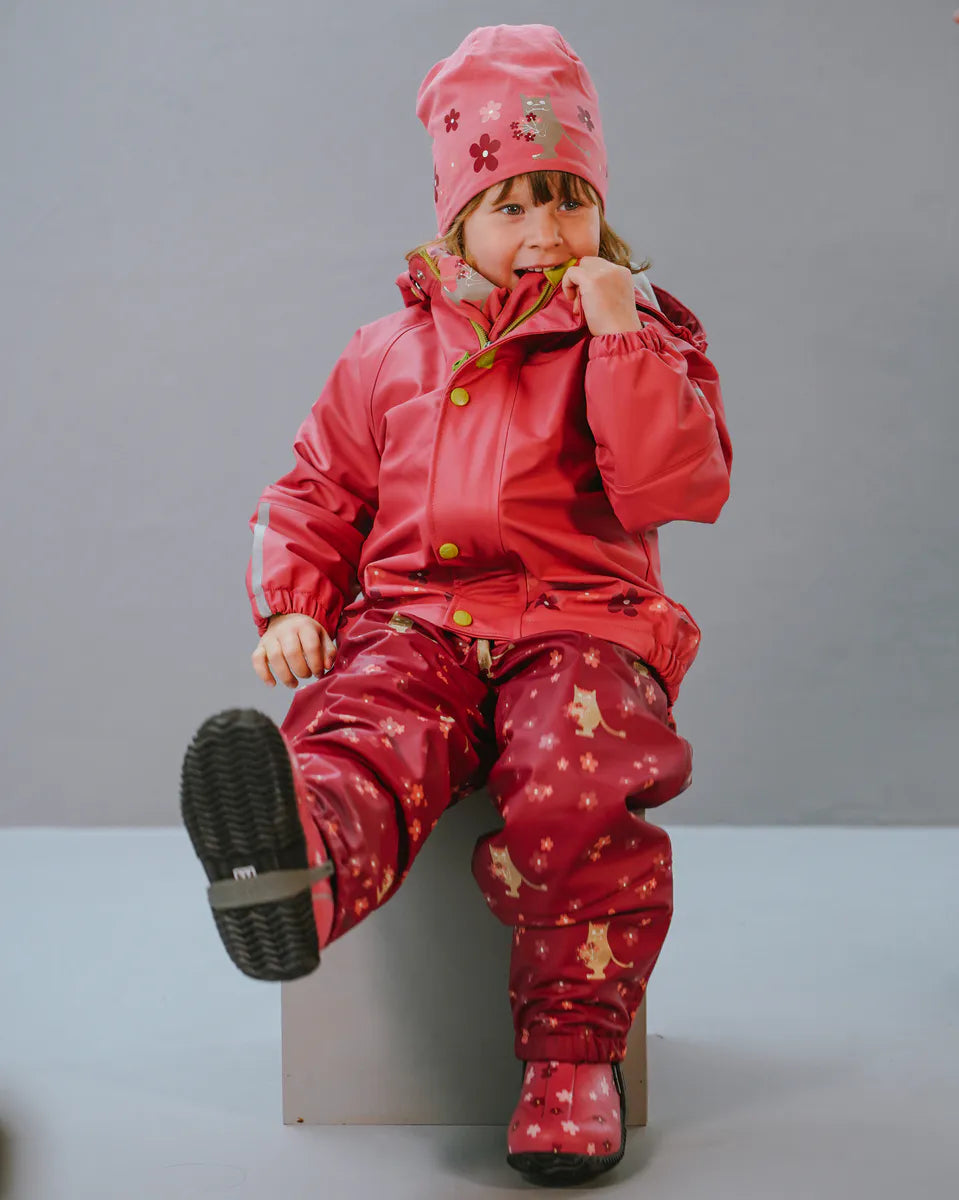 Reflekser på armer og ben gjør barnet godt synlig, og det fantasifulle printet fra Tolvmeterskogen løfter humøret på regnværsdager. Dette regnsettet er laget for barnehage, lek og eventyr – i all slags vær!