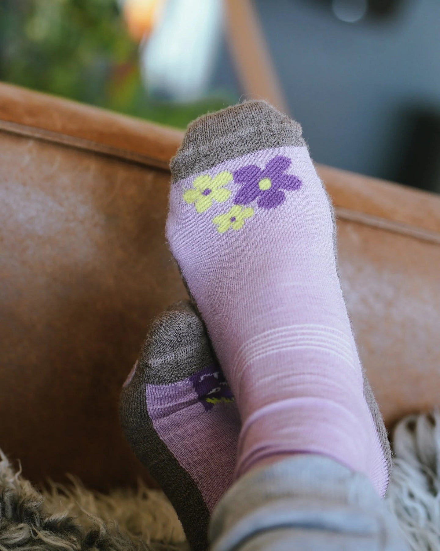 Fra kolleksjonen Tolvmeterskogen 2025 kommer disse sokkene i fargen Engkarse 🌸. Med forsterket såle og antiskli under foten gir de ekstra sikkerhet på glatte gulv, samtidig som de holder føttene varme og komfortable.