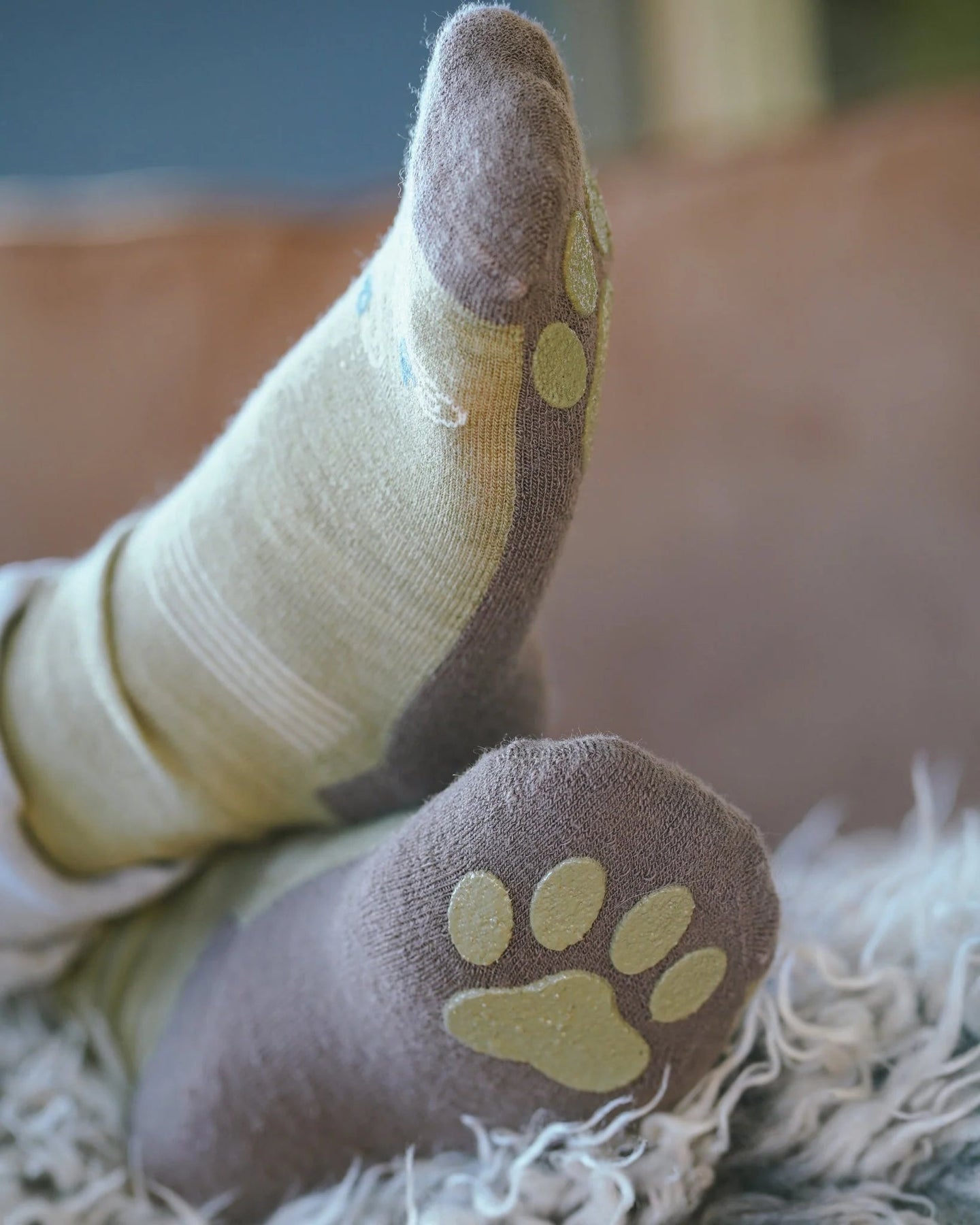 Fargen Mose gir et naturlig preg, og sokkene er laget med forsterket fotsåle og antiskli under. Perfekte til barnehage og skole, spesielt på glatte gulv hvor barna trenger godt feste.