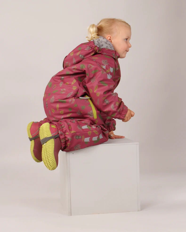 Dressen er laget i superslitesterk PU Ekstrem med en imponerende vanntetthet på 30 000 mm, og den glatte innsiden gjør den enkel for barna å ta av og på selv. Med 80 g vattering holder den barnet varmt selv på de kaldeste dagene.