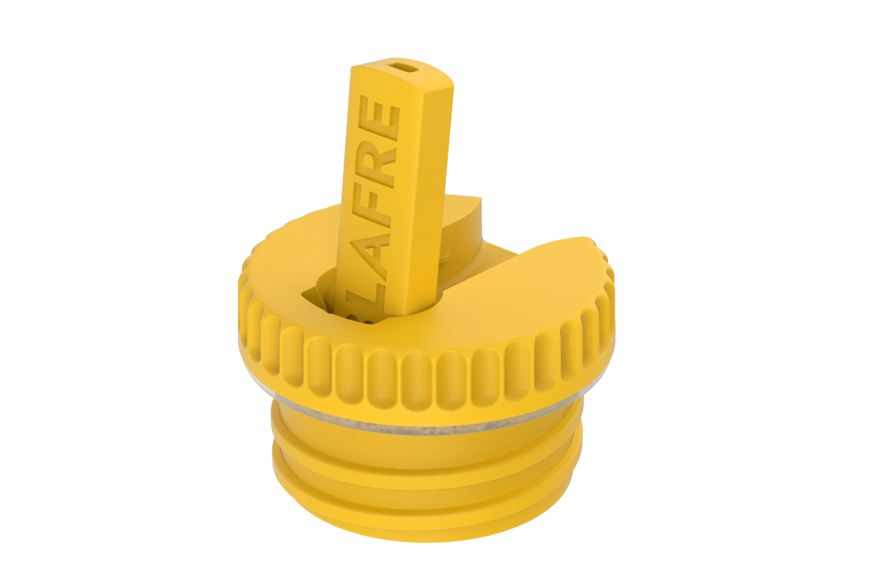 Korken er laget av trygg plast helt uten BPA og ftalater, og den tåler vask i oppvaskmaskin. Unngå dog koking eller høy varme, da formen kan endre seg. Den klare gulfargen gjør den lett å finne i sekken og populær hos både små og store.
