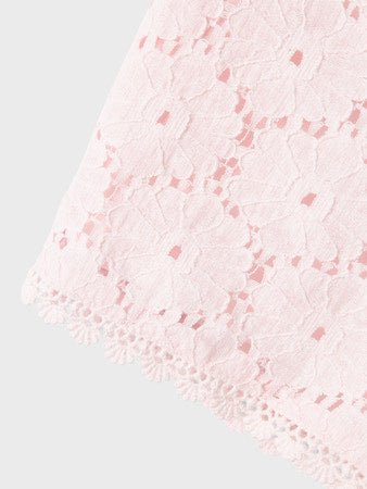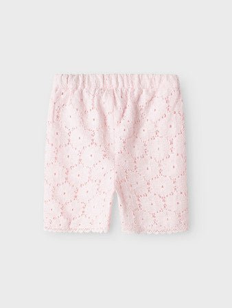 Shortsene er laget av et lett vevd materiale med et vakkert broderie anglaise-mønster, som har runde og ovale utskjæringer. De har justerbar snøring og elastisk midje for optimal komfort. Innsiden er foret med polyester mesh, slik at de ikke er gjennomsiktige.