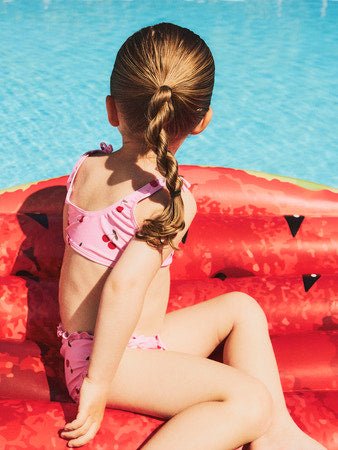 Klar for en dukkert eller solfylte dager? Dette kule bikinsettet gir barnet en trendy look!