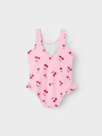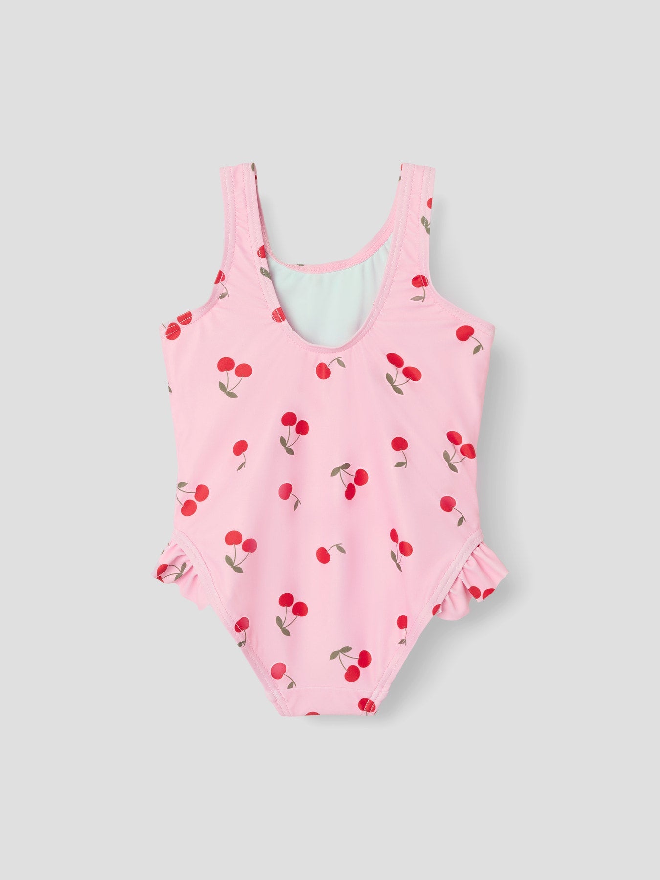 Perfekt for svømmeturer og lek i vannet. Badedrakten har søte volanger og et gjentakende trykk over hele drakten.