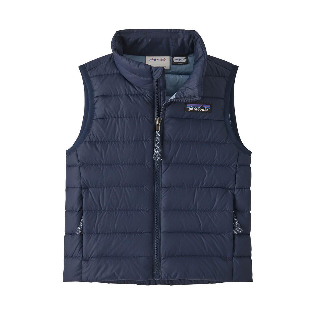 Varm og klassisk dunvest til de minste! Patagonia Baby Down Sweater-vesten i fargen New Navy kombinerer funksjon og stil med bærekraftige materialer. Perfekt som isolerende lag under en skalljakke eller alene på kjølige høstdager.
