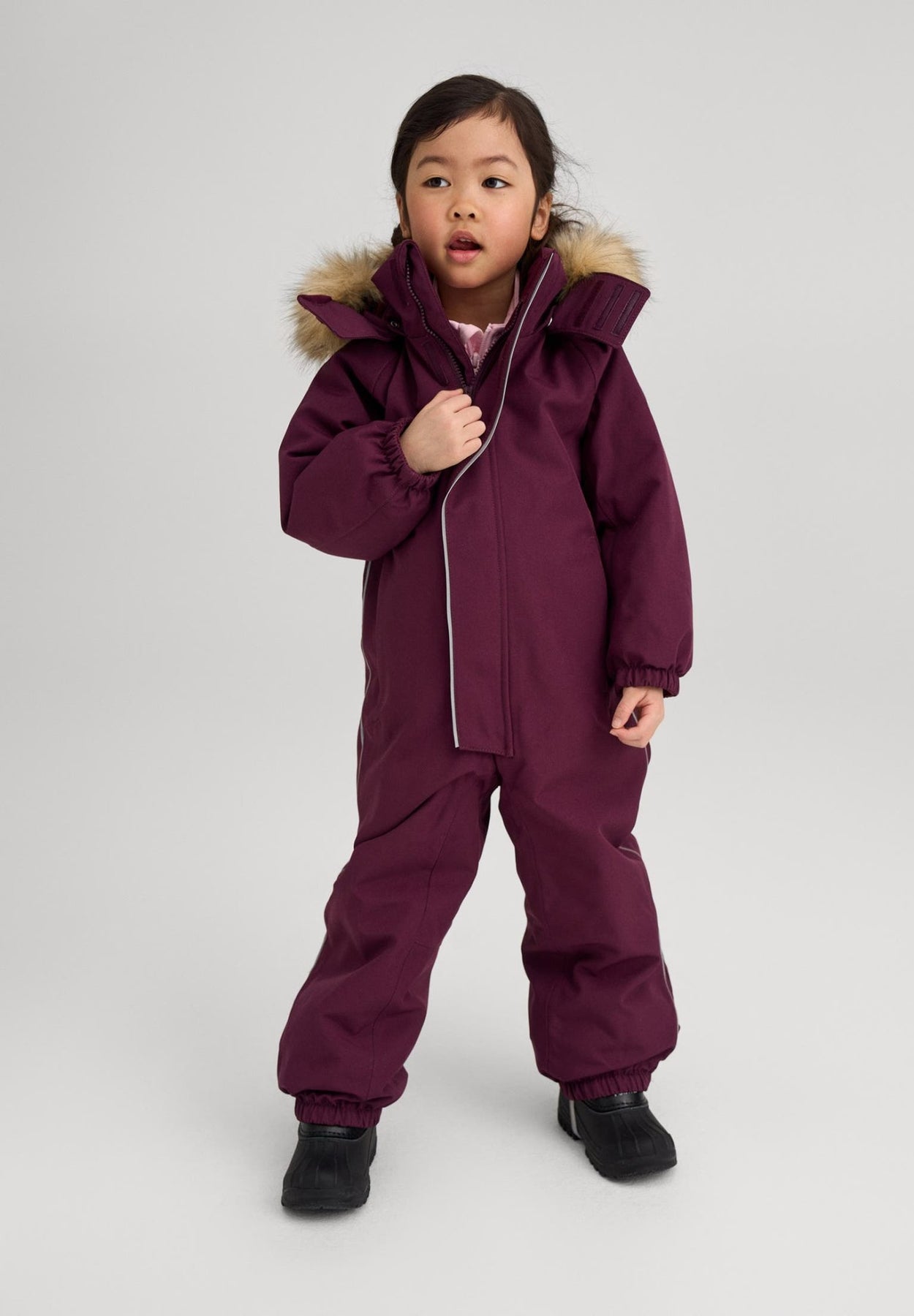 Dressen har et rett snitt med justerbar midje for optimal passform, og både mansjetter og bukseben kan reguleres. Den glatte innersiden gjør det lett å kle på lag under. Hetten med myk fuskepelskant beskytter mot kald vind – og løsner automatisk hvis den skulle hekte seg fast under lek.