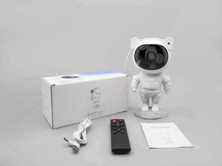 AstroGlow™ er en søt og futuristisk nattlampe utformet som en astronaut – med innebygd stjerneprojektor, justerbart lys og fjernkontroll. Den skaper en trygg og beroligende stemning på barnerommet – perfekt ved leggetid eller som dekorasjon.